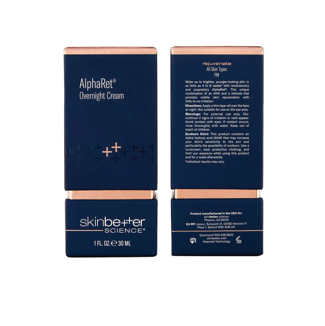 - Combines two gold standard skin rejuvenation ingredients – a retinoid and an AHA (lactic acid) – joined together to create the revolutionary AlphaRet technology that minimizes irritation, enhancing satisfaction and experience.